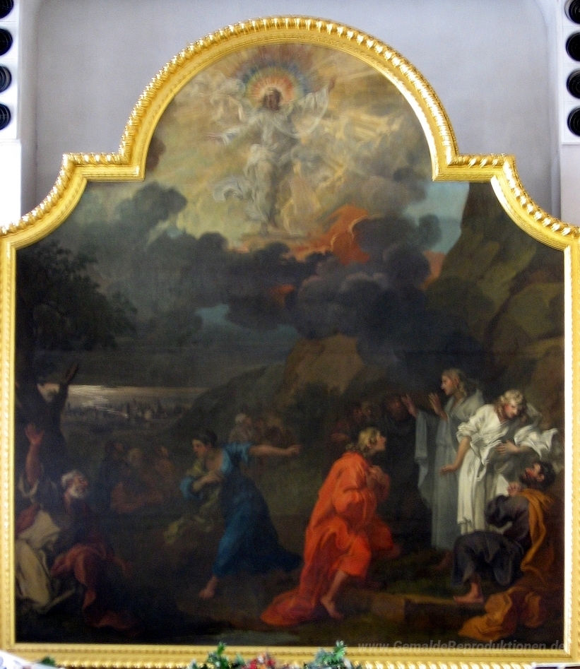 Wir bieten Ihnen eine handgefertigte Reproduktion auf Leinwand des berühmten Kunstwerks 'Mitteltafel des Altars Triptychon, St. Nikolaus, Bristol' von William Hogarth, aus dem Reproduktionsmuseum.