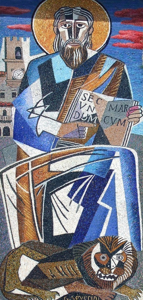 Wir bieten Ihnen eine handgefertigte Reproduktion auf Leinwand des berühmten Kunstwerks 'Mosaik an der Kirche von St. Mark, Cortona, Italien' von Gino Severini, aus dem Reproduktionsmuseum.