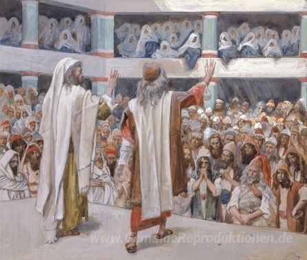 Wir bieten Ihnen eine handgefertigte Reproduktion auf Leinwand des berühmten Kunstwerks 'Mose und Aaron Sage den Menschen' von James Tissot, aus dem Reproduktionsmuseum.