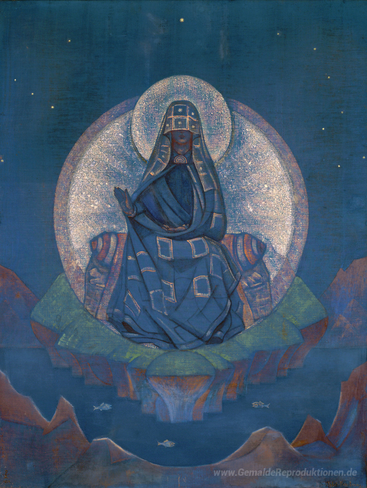 Wir bieten Ihnen eine handgefertigte Reproduktion auf Leinwand des berühmten Kunstwerks 'Mutter der Welt' von Nicholas Roerich, aus dem Reproduktionsmuseum.