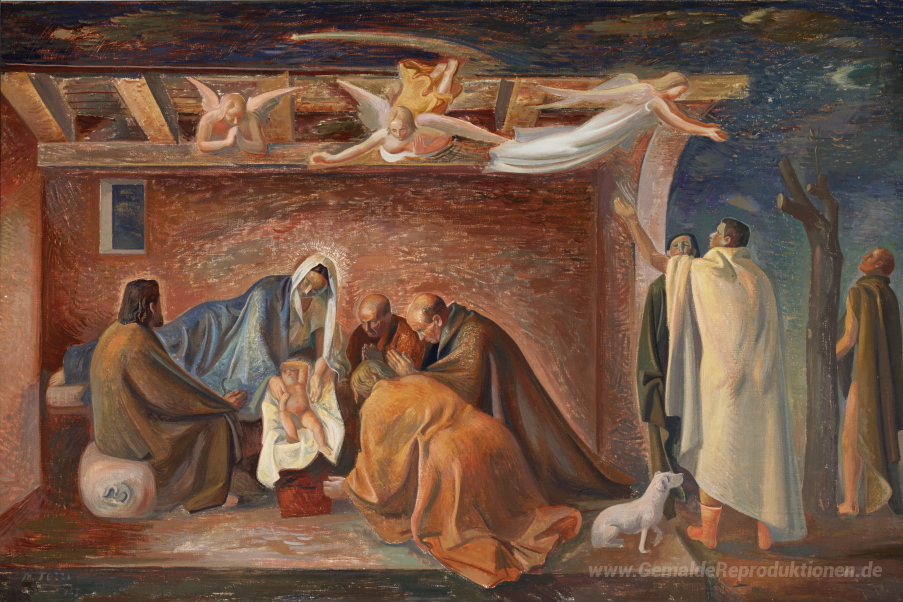 Wir bieten Ihnen eine handgefertigte Reproduktion auf Leinwand des berühmten Kunstwerks 'Natività' von Mario Tozzi, aus dem Reproduktionsmuseum.