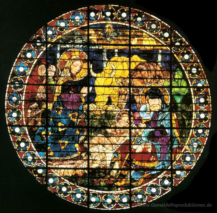 Wir bieten Ihnen eine handgefertigte Reproduktion auf Leinwand des berühmten Kunstwerks 'Oculus Darstellung der Geburt Christi' von Paolo Uccello, aus dem Reproduktionsmuseum.