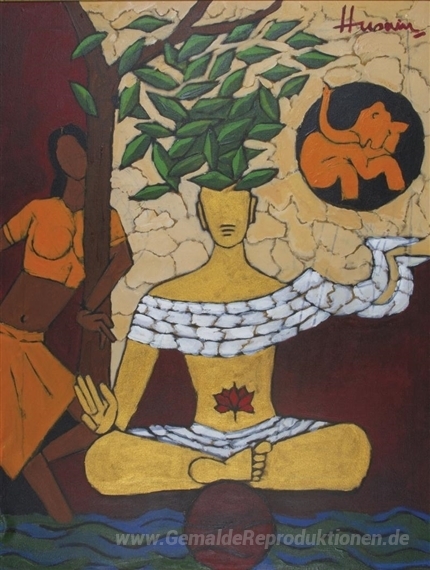 Wir bieten Ihnen eine handgefertigte Reproduktion auf Leinwand des berühmten Kunstwerks 'Ohne Titel' von M.F. Husain, aus dem Reproduktionsmuseum.