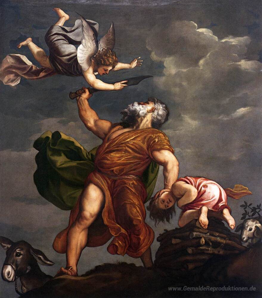 Wir bieten Ihnen eine handgefertigte Reproduktion auf Leinwand des berühmten Kunstwerks 'Opferung Isaaks' von Titian, aus dem Reproduktionsmuseum.
