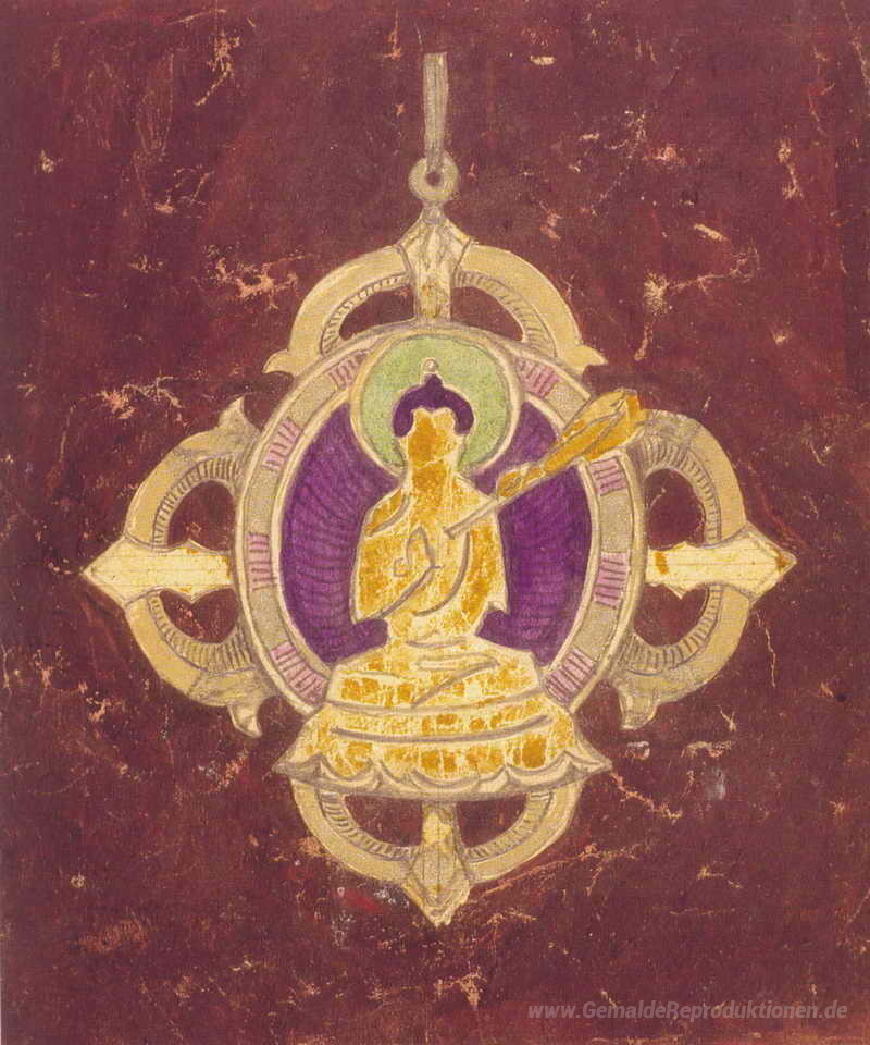 Wir bieten Ihnen eine handgefertigte Reproduktion auf Leinwand des berühmten Kunstwerks 'Orden des Buddha alles überwind' von Nicholas Roerich, aus dem Reproduktionsmuseum.