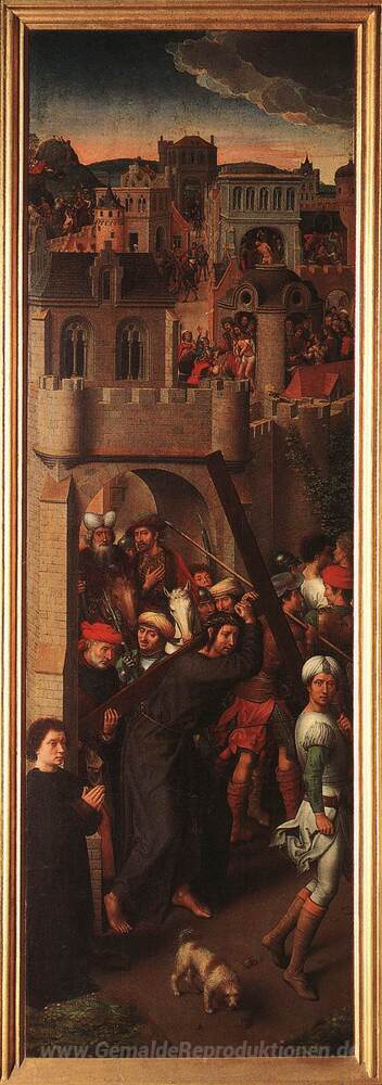 Wir bieten Ihnen eine handgefertigte Reproduktion auf Leinwand des berühmten Kunstwerks 'Passion (Greverade) Altar (linker Flügel)' von Hans Memling, aus dem Reproduktionsmuseum.