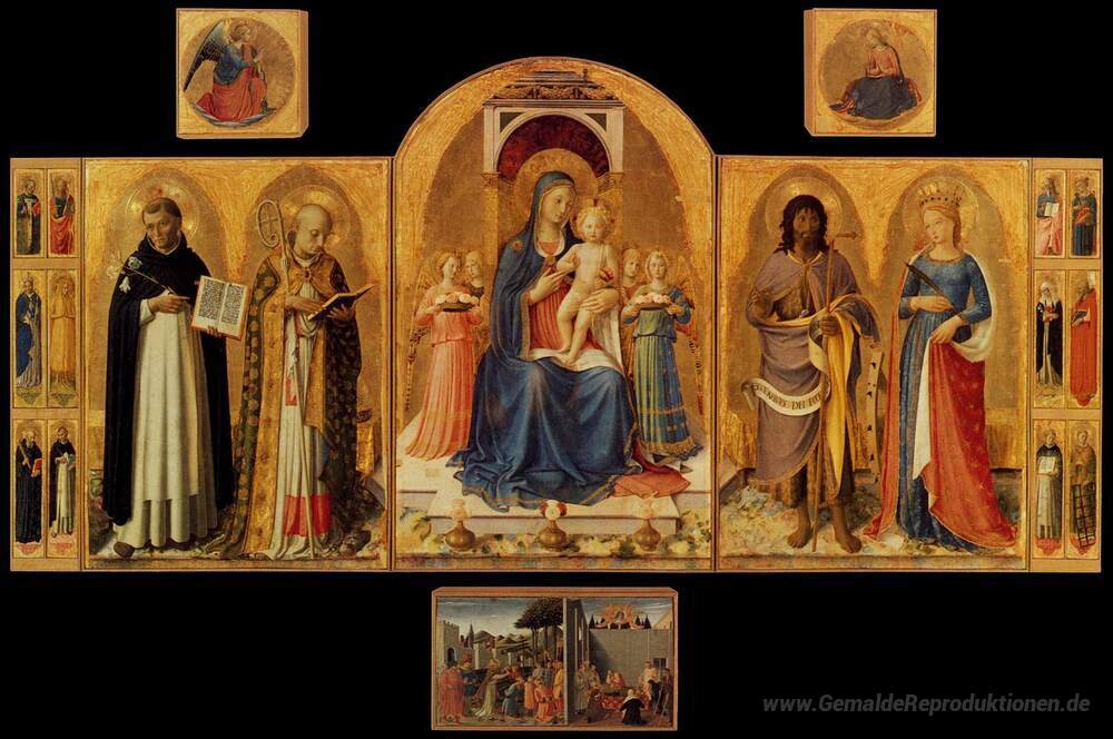Wir bieten Ihnen eine handgefertigte Reproduktion auf Leinwand des berühmten Kunstwerks 'Perugia Altar' von Fra Angelico, aus dem Reproduktionsmuseum.