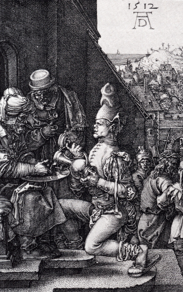 Wir bieten Ihnen eine handgefertigte Reproduktion auf Leinwand des berühmten Kunstwerks 'Pilatus, der seine Hände' von Albrecht Durer, aus dem Reproduktionsmuseum.
