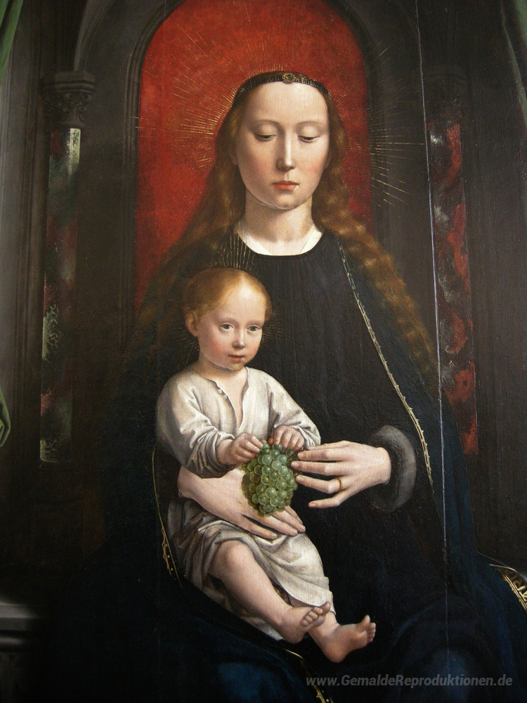 Wir bieten Ihnen eine handgefertigte Reproduktion auf Leinwand des berühmten Kunstwerks 'Polyptych von Cervara: Mittelbahn Madonna and Child Enthroned' von Gerard David, aus dem Reproduktionsmuseum.