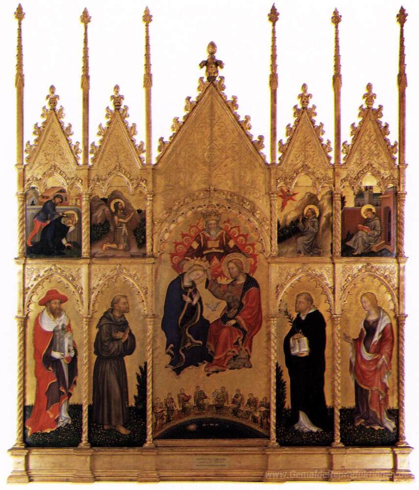 Wir bieten Ihnen eine handgefertigte Reproduktion auf Leinwand des berühmten Kunstwerks 'Polyptych von Valle Romita' von Gentile da Fabriano, aus dem Reproduktionsmuseum.