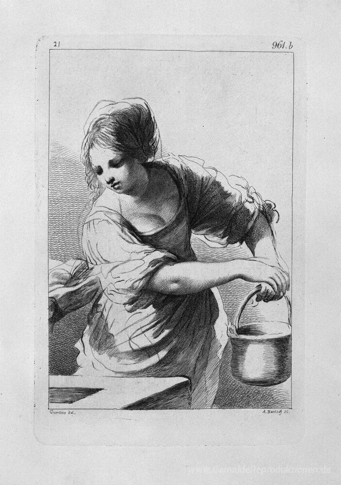 Wir bieten Ihnen eine handgefertigte Reproduktion auf Leinwand des berühmten Kunstwerks 'Rebecca am Brunnen, von Guercino' von Giovanni Battista Piranesi, aus dem Reproduktionsmuseum.