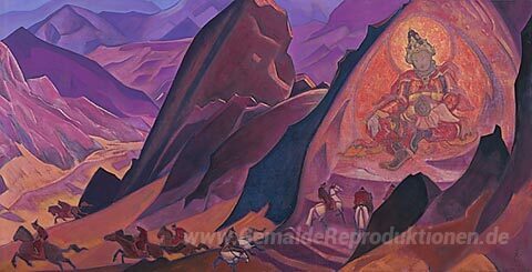 Wir bieten Ihnen eine handgefertigte Reproduktion auf Leinwand des berühmten Kunstwerks 'Reihenfolge der Rigden Jyepo' von Nicholas Roerich, aus dem Reproduktionsmuseum.