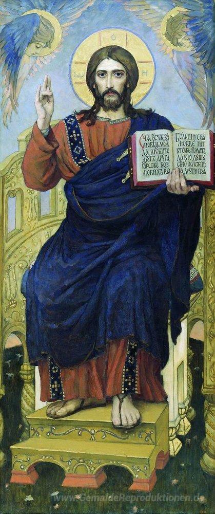 Wir bieten Ihnen eine handgefertigte Reproduktion auf Leinwand des berühmten Kunstwerks 'Retter' von Viktor Vasnetsov, aus dem Reproduktionsmuseum.