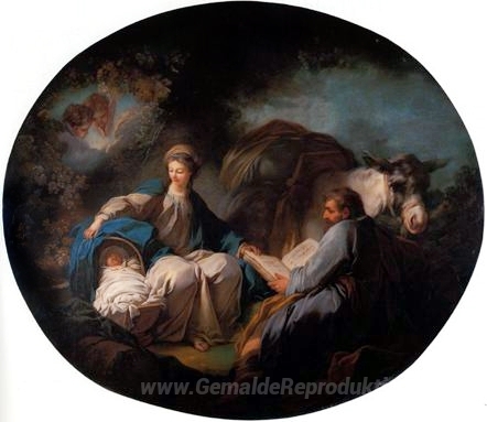 Wir bieten Ihnen eine handgefertigte Reproduktion auf Leinwand des berühmten Kunstwerks 'Ruhe auf der Flucht nach Ägypten' von Jean-Honore Fragonard, aus dem Reproduktionsmuseum.