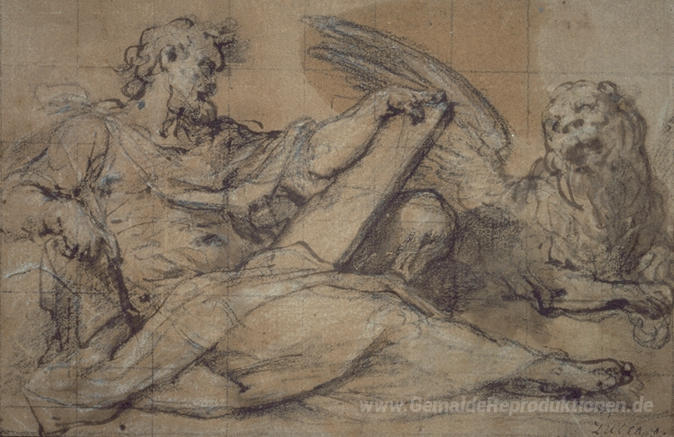 Wir bieten Ihnen eine handgefertigte Reproduktion auf Leinwand des berühmten Kunstwerks 'Saint Marc' von Correggio, aus dem Reproduktionsmuseum.