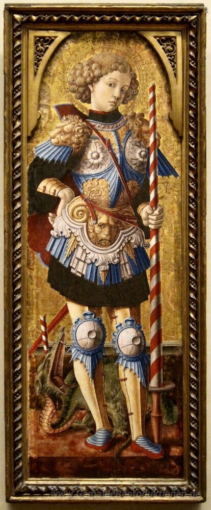 Wir bieten Ihnen eine handgefertigte Reproduktion auf Leinwand des berühmten Kunstwerks 'Sankt Georg' von Carlo Crivelli, aus dem Reproduktionsmuseum.