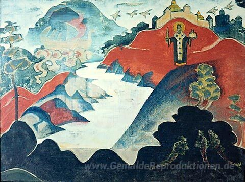 Wir bieten Ihnen eine handgefertigte Reproduktion auf Leinwand des berühmten Kunstwerks 'Sankt Nikolaus (Nicola Mozhaisky)' von Nicholas Roerich, aus dem Reproduktionsmuseum.