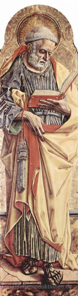 Wir bieten Ihnen eine handgefertigte Reproduktion auf Leinwand des berühmten Kunstwerks 'Sankt Peter' von Carlo Crivelli, aus dem Reproduktionsmuseum.