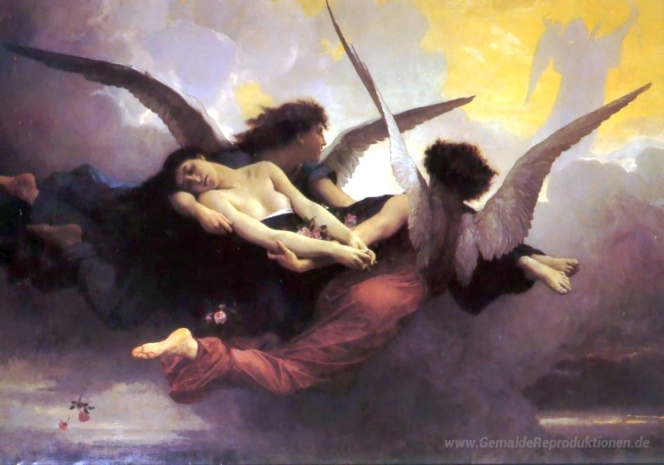 Wir bieten Ihnen eine handgefertigte Reproduktion auf Leinwand des berühmten Kunstwerks 'Seele in den Himmel getragen' von William-Adolphe Bouguereau, aus dem Reproduktionsmuseum.