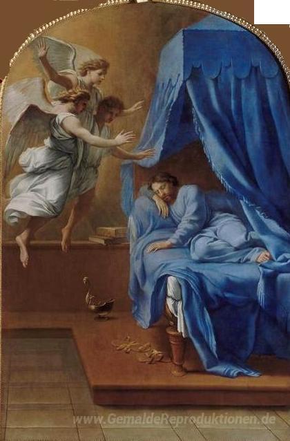 Wir bieten Ihnen eine handgefertigte Reproduktion auf Leinwand des berühmten Kunstwerks 'Songe de saint Bruno' von Eustache Le Sueur, aus dem Reproduktionsmuseum.