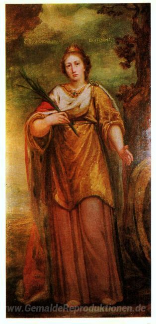 Wir bieten Ihnen eine handgefertigte Reproduktion auf Leinwand des berühmten Kunstwerks 'St. Catherine' von Mikhail Shibanov, aus dem Reproduktionsmuseum.