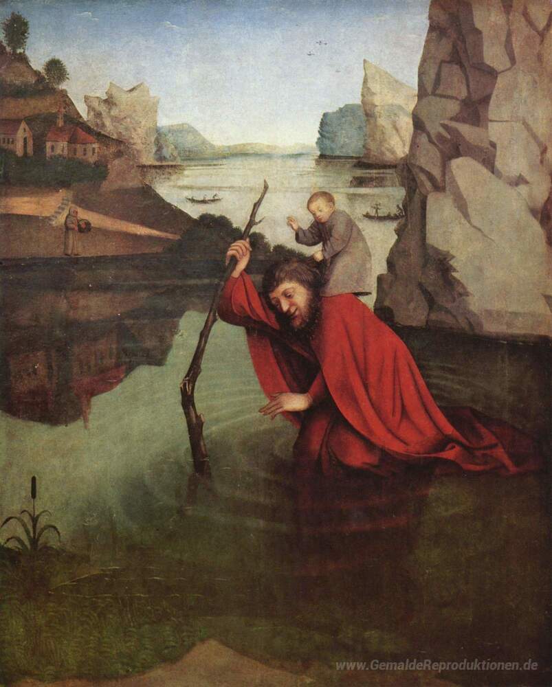 Wir bieten Ihnen eine handgefertigte Reproduktion auf Leinwand des berühmten Kunstwerks 'St. Christopher' von Konrad Witz, aus dem Reproduktionsmuseum.
