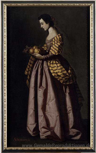 Wir bieten Ihnen eine handgefertigte Reproduktion auf Leinwand des berühmten Kunstwerks 'St. Dorothy' von Francisco de Zurbaran, aus dem Reproduktionsmuseum.