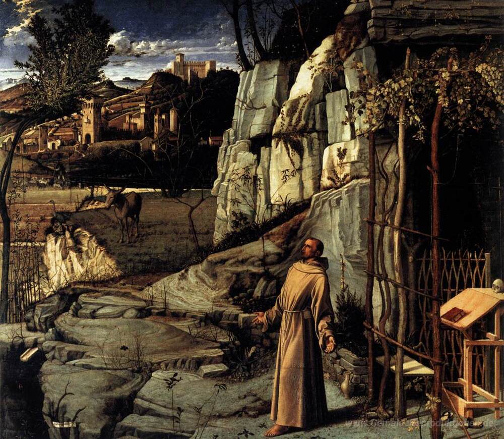 Wir bieten Ihnen eine handgefertigte Reproduktion auf Leinwand des berühmten Kunstwerks 'St Francis in Ecstasy' von Giovanni Bellini, aus dem Reproduktionsmuseum.