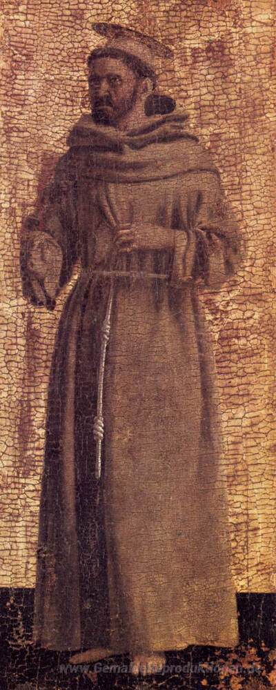 Wir bieten Ihnen eine handgefertigte Reproduktion auf Leinwand des berühmten Kunstwerks 'St. Francis' von Piero della Francesca, aus dem Reproduktionsmuseum.