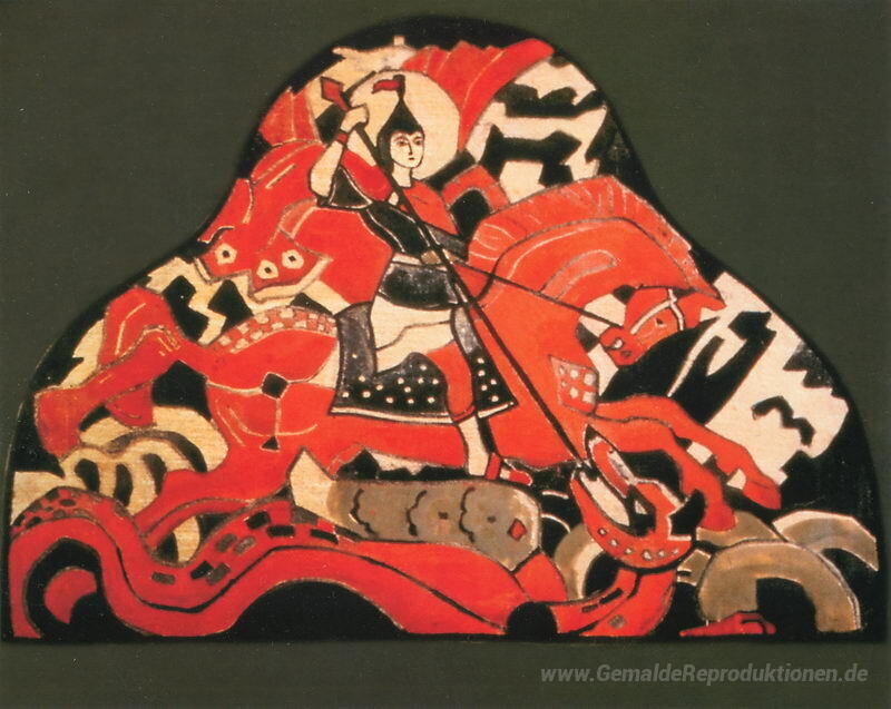 Wir bieten Ihnen eine handgefertigte Reproduktion auf Leinwand des berühmten Kunstwerks 'St. George der Siegreiche' von Nicholas Roerich, aus dem Reproduktionsmuseum.