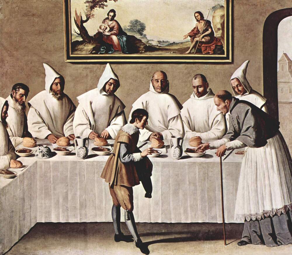 Wir bieten Ihnen eine handgefertigte Reproduktion auf Leinwand des berühmten Kunstwerks 'St. Hugo von Cluny im Refektorium der Kartäuser' von Francisco de Zurbaran, aus dem Reproduktionsmuseum.
