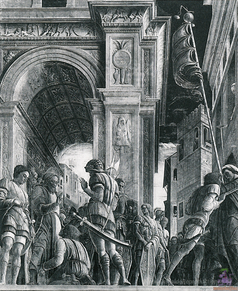 Wir bieten Ihnen eine handgefertigte Reproduktion auf Leinwand des berühmten Kunstwerks 'St. Jakobus der Große auf seinem Weg zur Ausführung' von Andrea Mantegna, aus dem Reproduktionsmuseum.