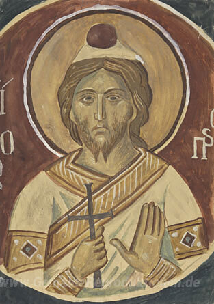 Wir bieten Ihnen eine handgefertigte Reproduktion auf Leinwand des berühmten Kunstwerks 'St James die persische, von Meteora 1931' von Yiannis Tsaroychis, aus dem Reproduktionsmuseum.