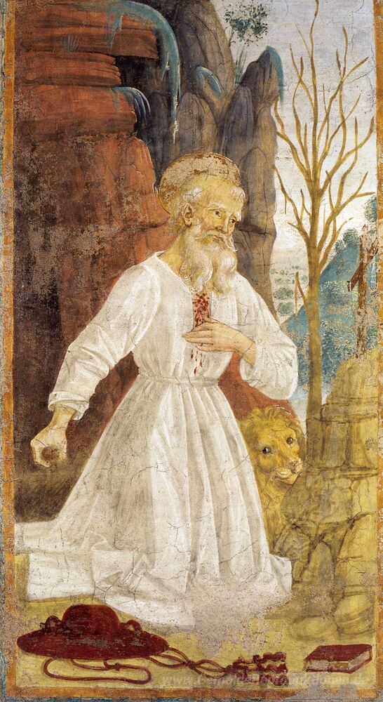 Wir bieten Ihnen eine handgefertigte Reproduktion auf Leinwand des berühmten Kunstwerks 'St. Jerome Buße' von Pietro Perugino, aus dem Reproduktionsmuseum.