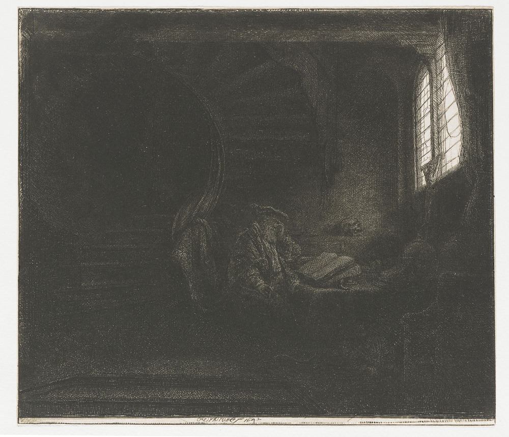 Wir bieten Ihnen eine handgefertigte Reproduktion auf Leinwand des berühmten Kunstwerks 'St Jerome in einer dunklen Kammer' von Rembrandt, aus dem Reproduktionsmuseum.
