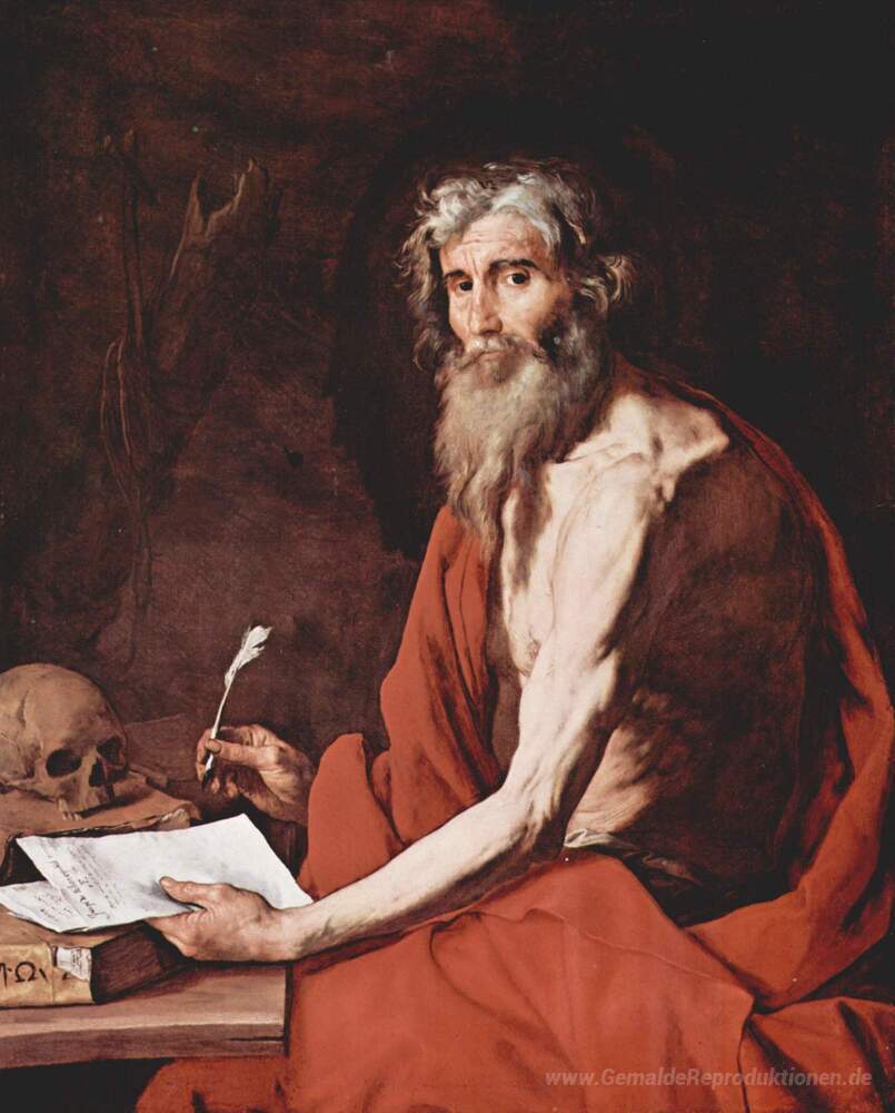 Wir bieten Ihnen eine handgefertigte Reproduktion auf Leinwand des berühmten Kunstwerks 'St. Jerome' von Jusepe de Ribera, aus dem Reproduktionsmuseum.