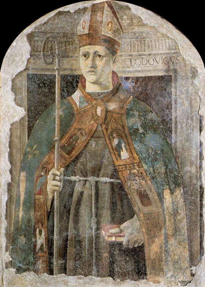 Wir bieten Ihnen eine handgefertigte Reproduktion auf Leinwand des berühmten Kunstwerks 'St. Ludovico' von Piero della Francesca, aus dem Reproduktionsmuseum.
