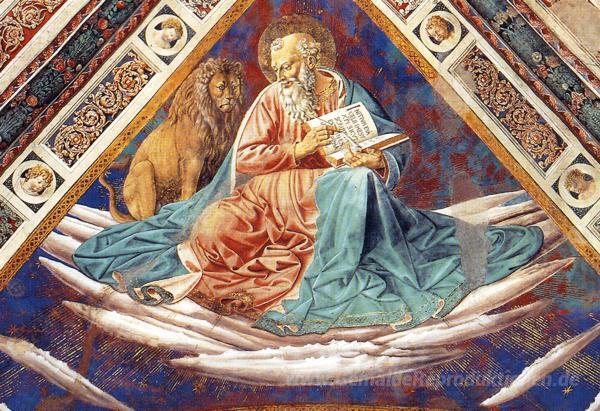 Wir bieten Ihnen eine handgefertigte Reproduktion auf Leinwand des berühmten Kunstwerks 'St. Mark (Detail der vier Evangelisten)' von Benozzo Gozzoli, aus dem Reproduktionsmuseum.