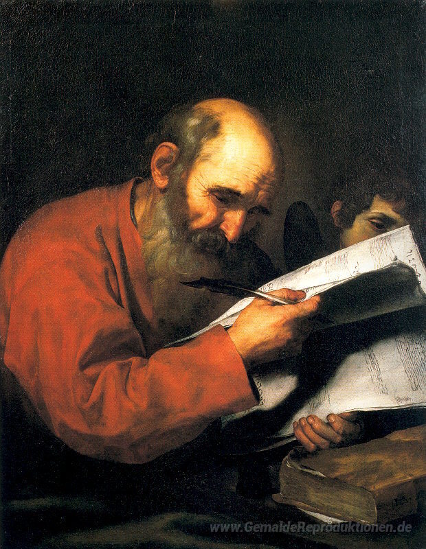 Wir bieten Ihnen eine handgefertigte Reproduktion auf Leinwand des berühmten Kunstwerks 'St. Matthäus mit dem Engel' von Jusepe de Ribera, aus dem Reproduktionsmuseum.