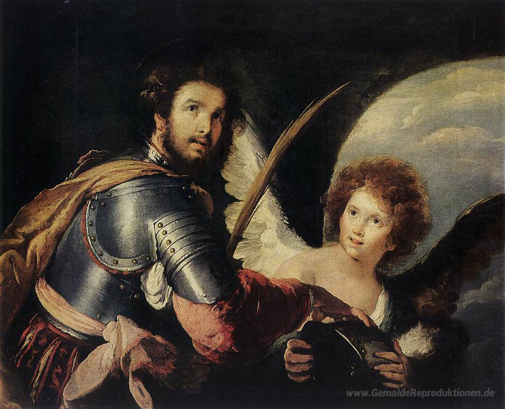 Wir bieten Ihnen eine handgefertigte Reproduktion auf Leinwand des berühmten Kunstwerks 'St. Maurice und der Engel' von Bernardo Strozzi, aus dem Reproduktionsmuseum.