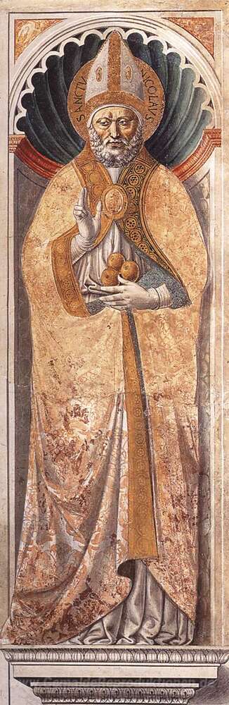 Wir bieten Ihnen eine handgefertigte Reproduktion auf Leinwand des berühmten Kunstwerks 'St. Nikolaus von Bari' von Benozzo Gozzoli, aus dem Reproduktionsmuseum.