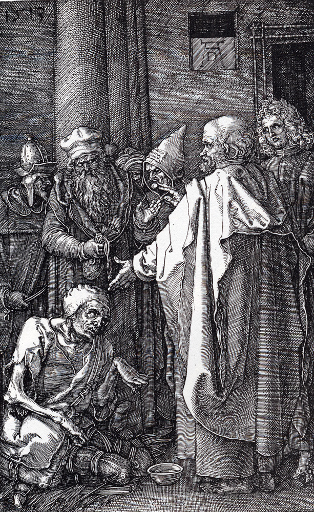 Wir bieten Ihnen eine handgefertigte Reproduktion auf Leinwand des berühmten Kunstwerks 'St. Peter und St. John Healing Der Krüppel' von Albrecht Durer, aus dem Reproduktionsmuseum.