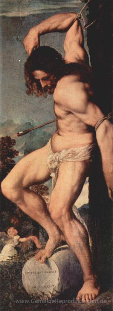 Wir bieten Ihnen eine handgefertigte Reproduktion auf Leinwand des berühmten Kunstwerks 'St. Sebastian' von Titian, aus dem Reproduktionsmuseum.