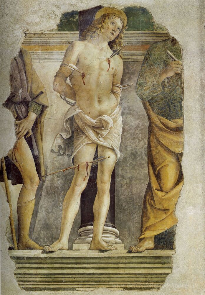 Wir bieten Ihnen eine handgefertigte Reproduktion auf Leinwand des berühmten Kunstwerks 'St. Sebastian und Stücke der Figur des heiligen Rochus und St. P' von Pietro Perugino, aus dem Reproduktionsmuseum.