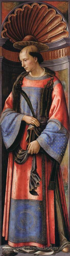 Wir bieten Ihnen eine handgefertigte Reproduktion auf Leinwand des berühmten Kunstwerks 'St. Stephen Martyr' von Domenico Ghirlandaio, aus dem Reproduktionsmuseum.