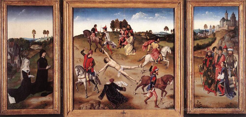 Wir bieten Ihnen eine handgefertigte Reproduktion auf Leinwand des berühmten Kunstwerks 'St.Hippolyte Triptychon' von Hugo van der Goes, aus dem Reproduktionsmuseum.