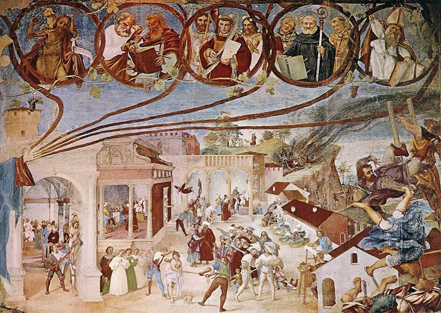 Wir bieten Ihnen eine handgefertigte Reproduktion auf Leinwand des berühmten Kunstwerks 'Stories von St. Barbara' von Lorenzo Lotto, aus dem Reproduktionsmuseum.