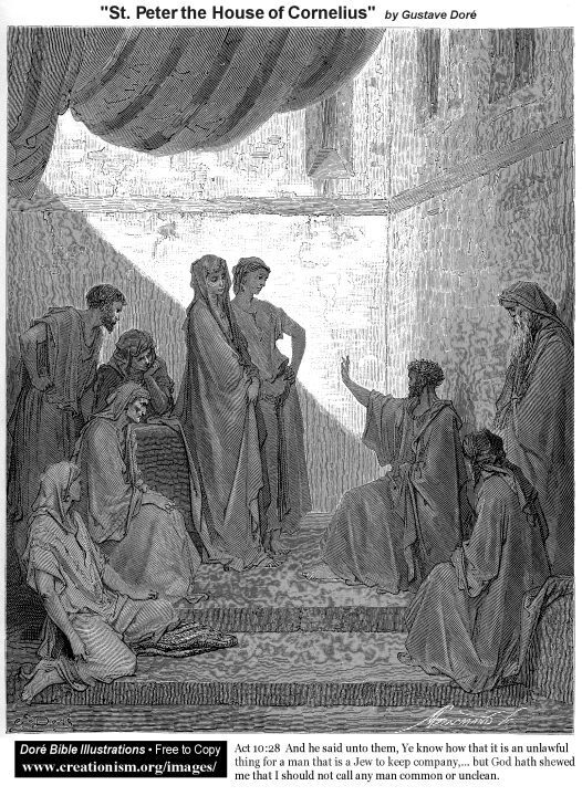 Wir bieten Ihnen eine handgefertigte Reproduktion auf Leinwand des berühmten Kunstwerks 'St.Peter im Haus von Cornelius' von Gustave Dore, aus dem Reproduktionsmuseum.