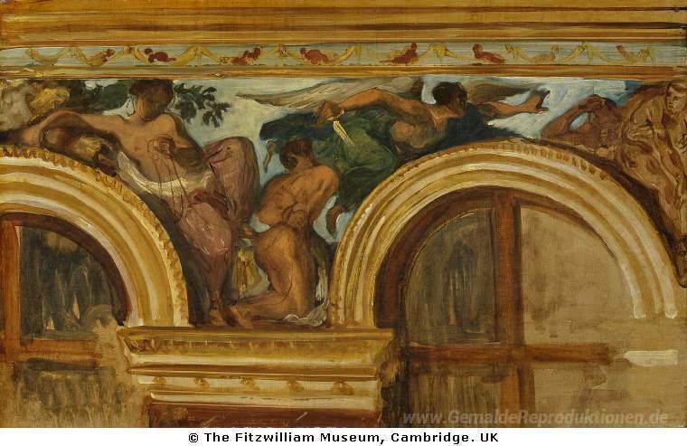 Wir bieten Ihnen eine handgefertigte Reproduktion auf Leinwand des berühmten Kunstwerks 'Studie für einen Teil der "Gerechtigkeit" Fries' von Eugene Delacroix, aus dem Reproduktionsmuseum.