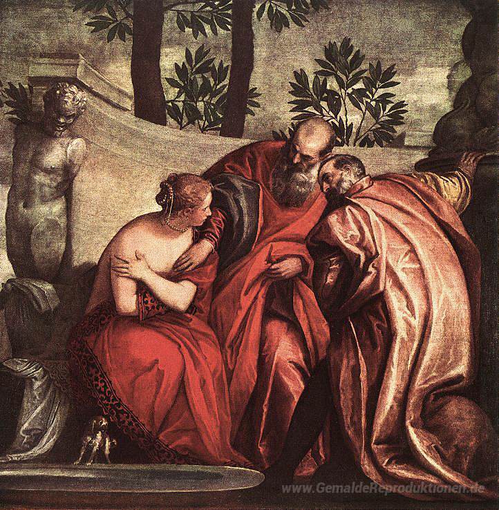 Wir bieten Ihnen eine handgefertigte Reproduktion auf Leinwand des berühmten Kunstwerks 'Susanna im Bade' von Paolo Veronese, aus dem Reproduktionsmuseum.